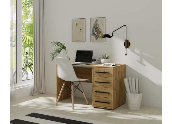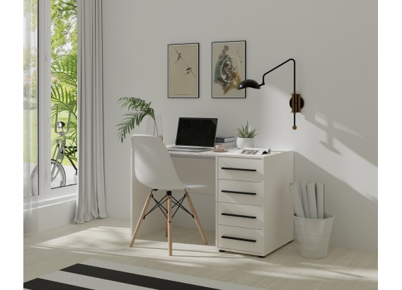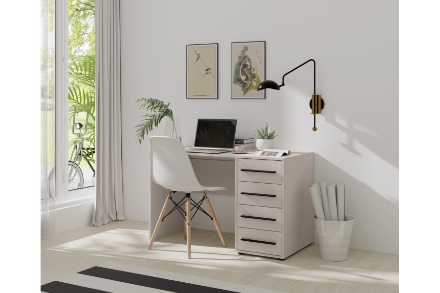 Biurko z kolekcji MILARO to doskonałe rozwiązanie dla osób ceniących wygodę, estetykę i porządek. Zintegrowany kontenerek z czterema szufladami zapewnia mnóstwo miejsca na dokumenty, akcesoria biurowe czy przedmioty codziennego użytku. Biurko świetnie sprawdzi się w pokoju młodzieżowym, gabinecie lub domowym biurze.