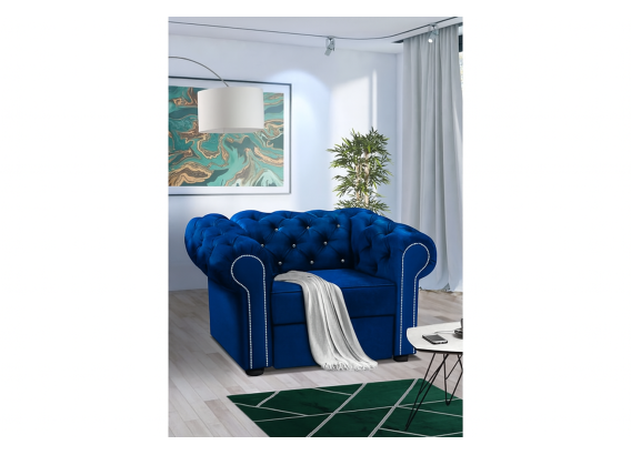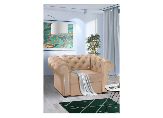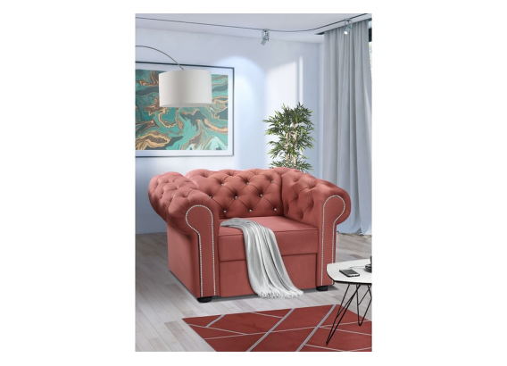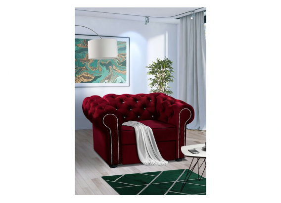 Fotel Chesterfield Lux to połączenie nowoczesnej formy i klasycznego designu. Delikatne zdobienia, eleganckie pikowania wpływają na bardzo gustowny wygląd mebla. Wypełnieniem fotela jest wytrzymała sprężyna falista oraz miękka i elastyczna pianka T30 odporna na uszkodzenia.