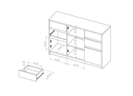 - Głębokość szuflady: 33,5 cm