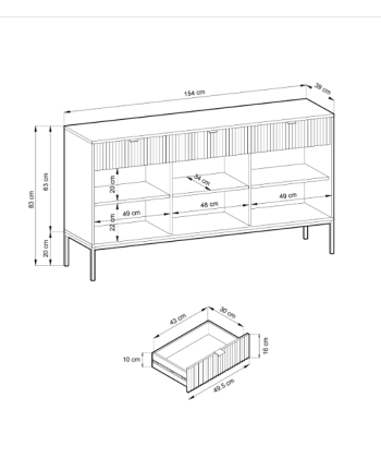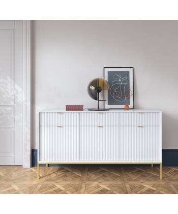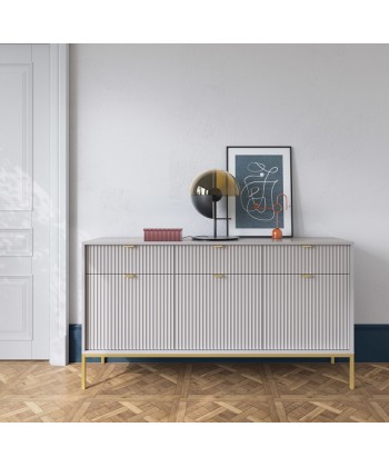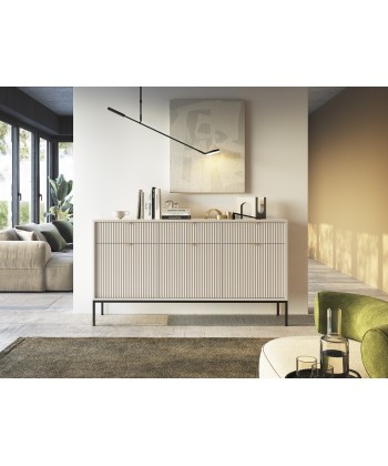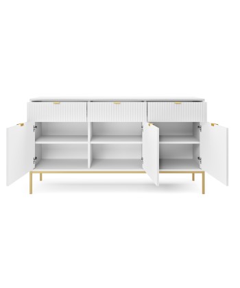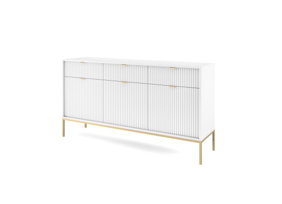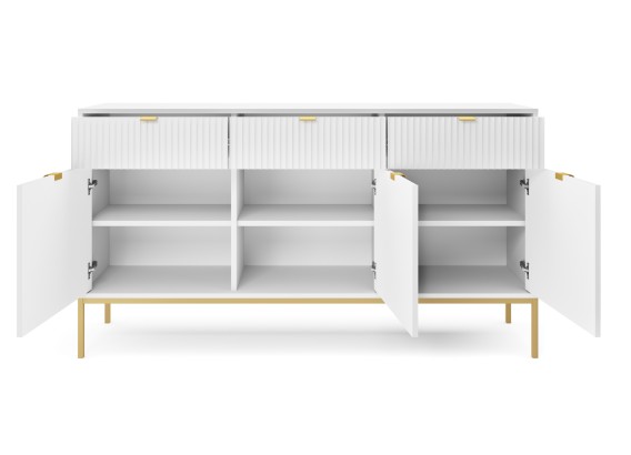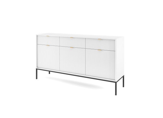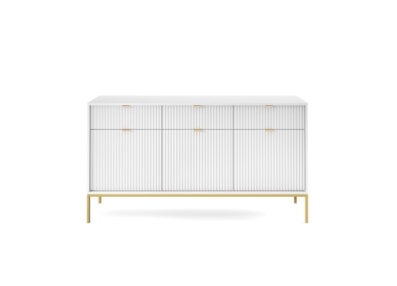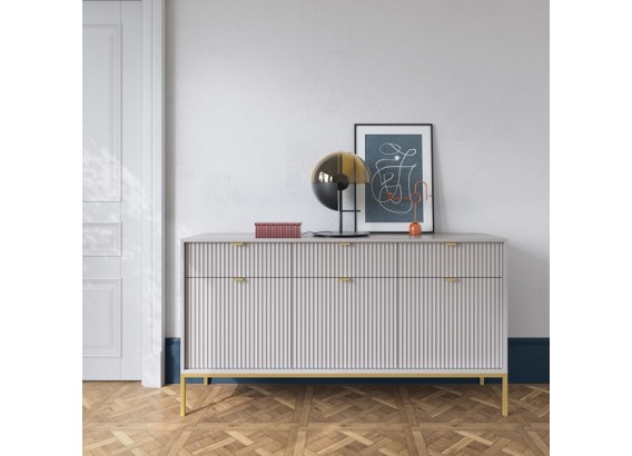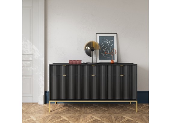 Komoda Vona to największy model z tej kolekcji – stworzona z myślą o tych, którzy potrzebują dużo miejsca do przechowywania, ale nie chcą rezygnować z estetyki. Trzy szuflady i trzy zamykane szafki dają wiele możliwości aranżacyjnych, a smukła forma na metalowym stelażu nadaje całości lekkości.