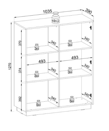 - Głębokość półek: 34 cm