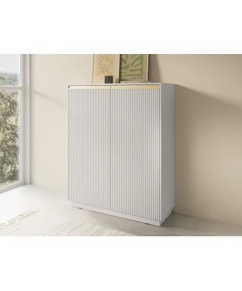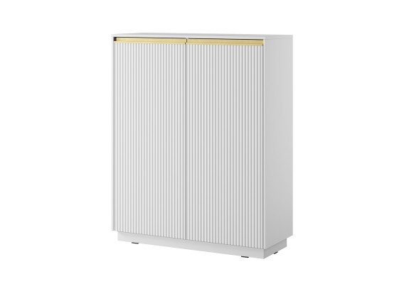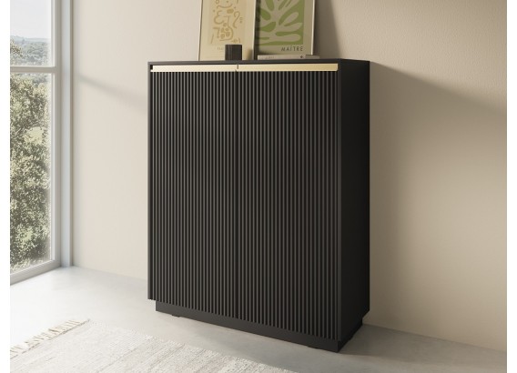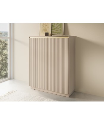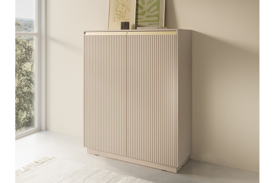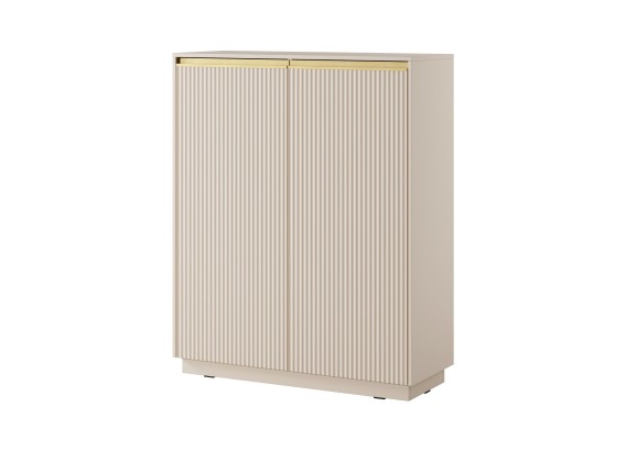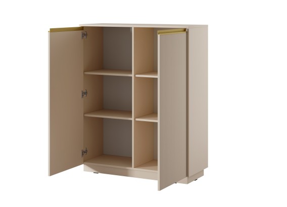 Najwyższy model z kolekcji ROJ to idealna propozycja dla osób ceniących stylowe rozwiązania i dużą przestrzeń do przechowywania. Piaskowe wykończenie, pionowe ryflowania i złote detale nadają jej wyjątkowy charakter. Świetnie sprawdzi się w salonie, jadalni, sypialni czy domowym biurze.