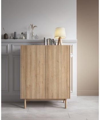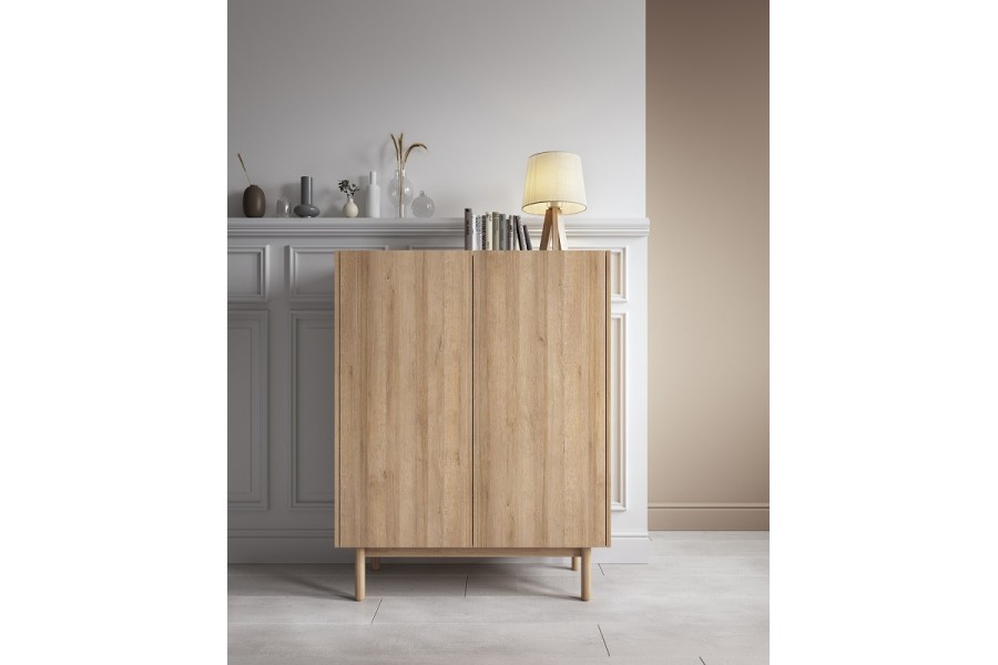 Komoda BINGO to przykład doskonałej równowagi między estetyką a funkcjonalnością. Jej elegancka, smukła sylwetka na wysokich nogach wprowadza do wnętrza poczucie lekkości, a naturalne wybarwienie drewna sprawia, że doskonale komponuje się z aranżacjami w stylu skandynawskim, japandi czy boho. Dzięki przemyślanemu wnętrzu za podwójnymi drzwiami kryje się praktyczna przestrzeń do przechowywania.