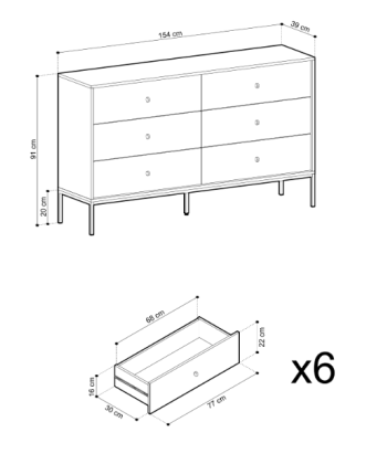 - Duża pojemność – aż 6 głębokich i szerokich szuflad z pełnym wysuwem pomieszczą wiele rzeczy, ułatwiając organizację.