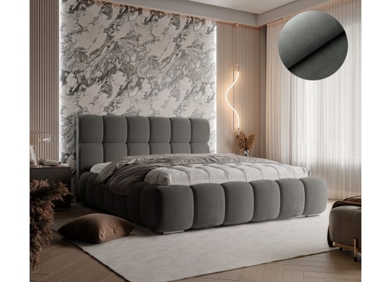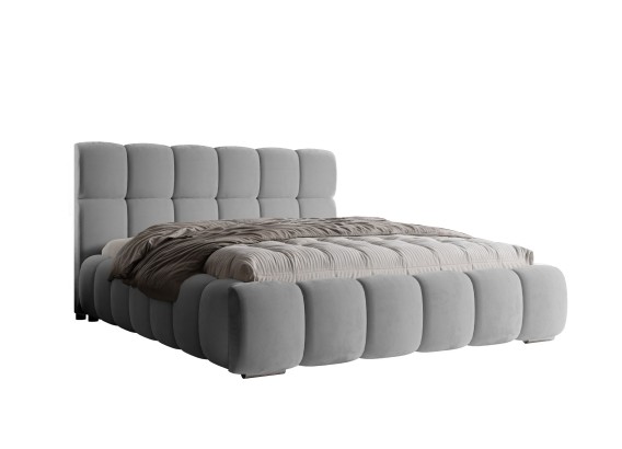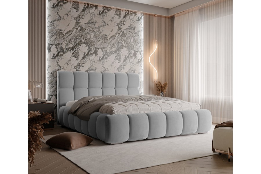 To łóżko to nowoczesna interpretacja komfortu – połączenie wyjątkowej formy z wygodą codziennego wypoczynku. Dzięki efektownemu pikowanemu wezgłowiu w formie modułów i miękkiej, zaokrąglonej podstawie, mebel zyskuje niepowtarzalny charakter, który przyciąga wzrok i wprowadza do sypialni przytulną atmosferę.