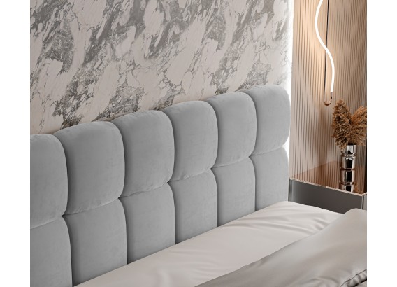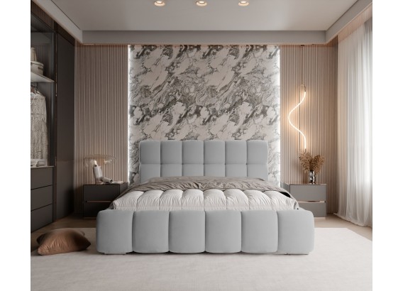 To łóżko to nowoczesna interpretacja komfortu – połączenie wyjątkowej formy z wygodą codziennego wypoczynku. Dzięki efektownemu pikowanemu wezgłowiu w formie modułów i miękkiej, zaokrąglonej podstawie, mebel zyskuje niepowtarzalny charakter, który przyciąga wzrok i wprowadza do sypialni przytulną atmosferę.