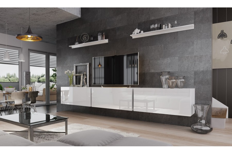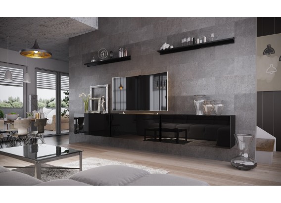 Stylowa i funkcjonalna meblościanka BOX 6 to idealne rozwiązanie dla osób ceniących nowoczesny design i praktyczne zagospodarowanie przestrzeni. Minimalistyczna forma, połyskujące fronty i system push-to-open sprawiają, że zestaw świetnie wpisuje się w aktualne trendy aranżacyjne.