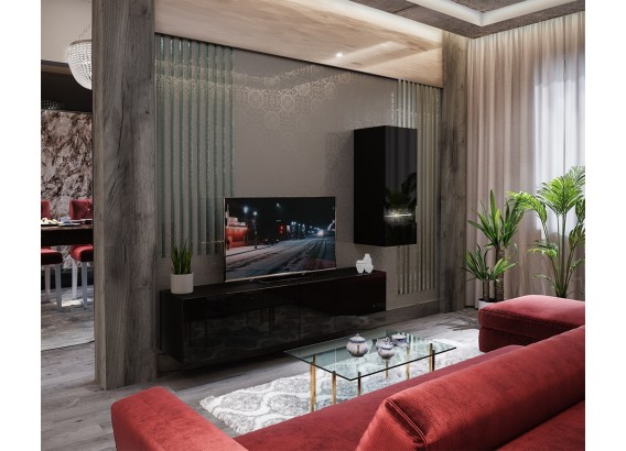 BOX 15 to nowoczesny zestaw mebli RTV, który łączy elegancki połysk, przemyślane proporcje i funkcjonalność. Idealny jako centralny punkt aranżacji salonu – świetnie prezentuje się z telewizorem oraz dodatkami dekoracyjnymi.