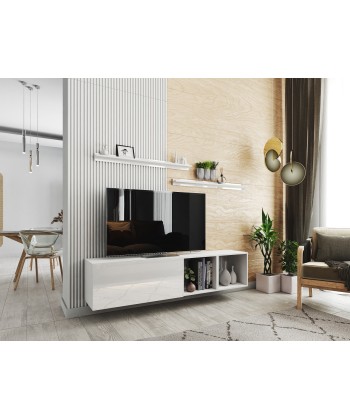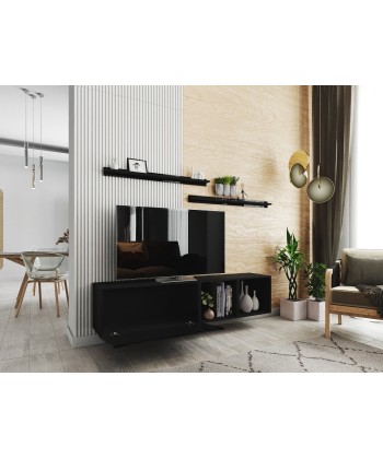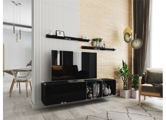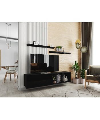 BOX 19 to nowoczesny zestaw mebli RTV, który wyróżnia się nie tylko estetyką, ale i praktycznym układem. Połączenie szerokich szafek dolnych z zabudową ścienną tworzy elegancką i funkcjonalną przestrzeń do przechowywania i ekspozycji.
