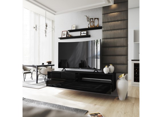 Meblościanka 3&7 BOX idealnie wpasuję się do twojego salonu dzięki jego nowoczesnemu designowi. Szafki można wieszać w dowolny sposób. Szafki nie posiadają uchwytów mają zamontowany sposób otwierania: push to open