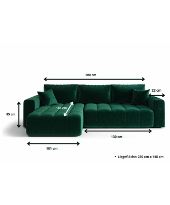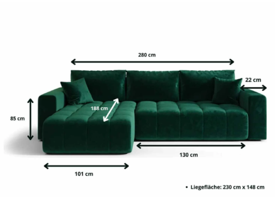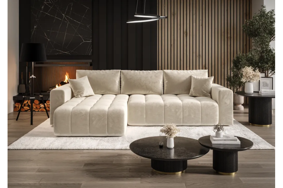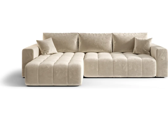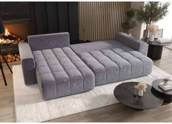 Stwórz wyjątkową przestrzeń do relaksu z narożnikiem Gabo-L, który łączy nowoczesny wygląd, wysoki komfort siedzenia oraz praktyczne rozwiązania do codziennego użytkowania. Idealny zarówno do spotkań z bliskimi, jak i spokojnego wypoczynku po długim dniu. Stylowa tkanina welurowa nadaje mu luksusowy charakter, a funkcja spania i pojemnik na pościel sprawiają, że zyskujesz dodatkową przestrzeń bez rezygnacji z elegancji.