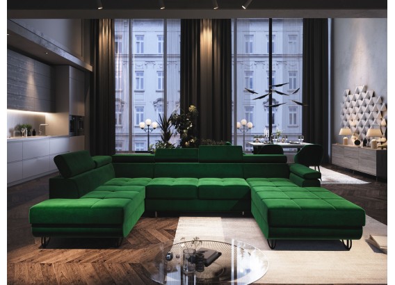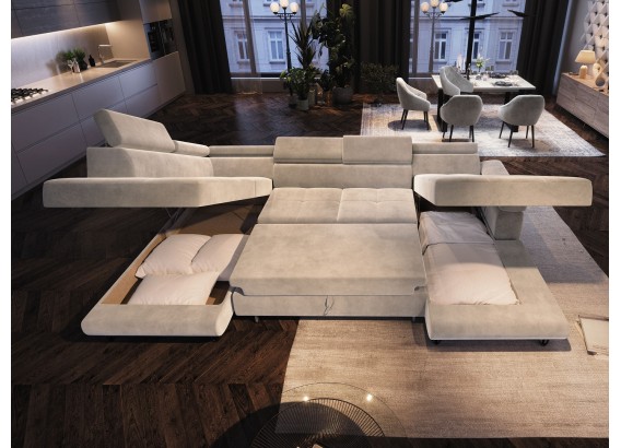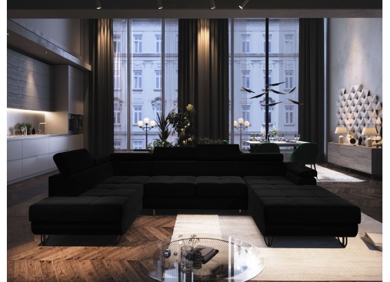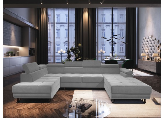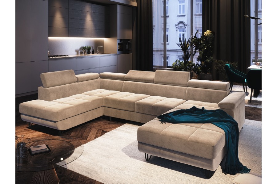 - Nowoczesny wygląd – narożnik w kształcie litery U, świetny do dużych wnętrz