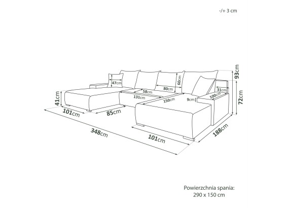 - Powierzchnia spania: 290x150