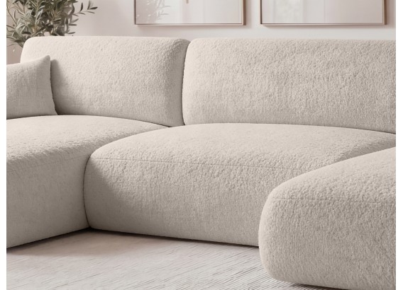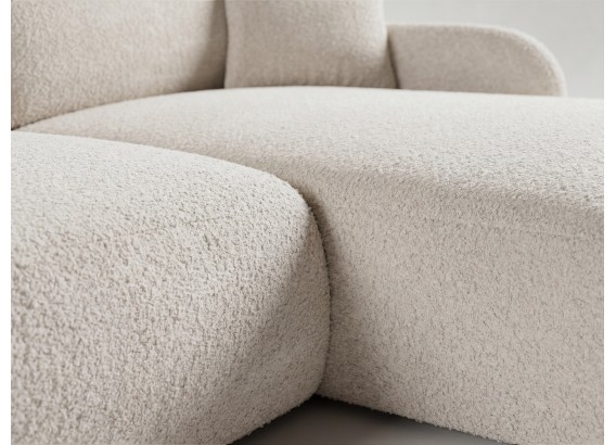 Połączenie sprężyn falistych, odpowiedniej pianki tapicerskiej oraz miękkiej tkaniny bouclé sprawia, że narożnik PIERR zapewnia wysoki komfort codziennego użytkowania.