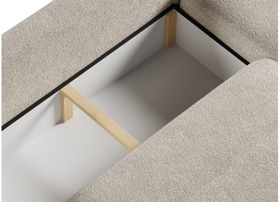 Dzięki funkcji spania narożnik w kilka chwil zamienia się w dużą powierzchnię do odpoczynku nocnego. Dodatkowy pojemnik na pościel pozwala wygodnie przechowywać kołdry i poduszki, dzięki czemu wszystko masz pod ręką.