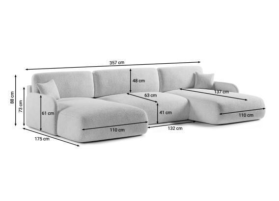 Narożnik Pierro U to idealna propozycja dla osób, które cenią przestrzeń, wygodę i efektowny wygląd w salonie. Jego rozbudowana forma w kształcie litery U tworzy komfortową strefę wypoczynku, która sprawdzi się zarówno podczas codziennego relaksu, jak i spotkań w większym gronie.