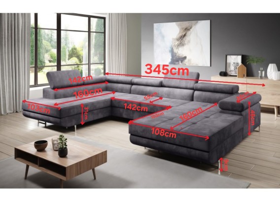 Narożnik Mandana U to nowoczesny design oraz staranne wykonanie, wkomponuje się w każde pomieszczenie. Dzięki regulacji zagłówków dostosujesz oparcie na miarę swoich potrzeb. Narożnik posiada funkcję spania! Wyprodukowany jest od podstaw, aż do wykończenia w jednej firmie oraz sprzedawany prosto od producenta co daje nam najlepszą cenę a zarazem najlepszą jakość.