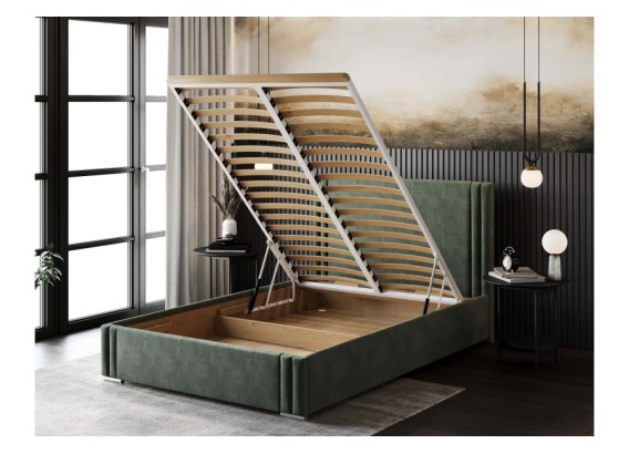 Model łączy elegancki design z praktycznym pojemnikiem na pościel i solidnym drewnianym stelażem, który gwarantuje trwałość na lata.