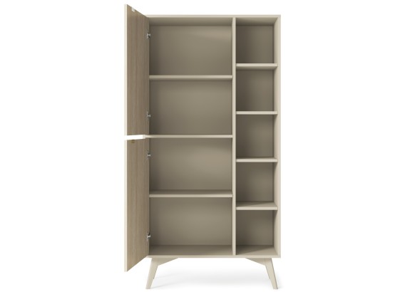 Regał z kolekcji Resto to praktyczne i stylowe rozwiązanie do przechowywania oraz ekspozycji. Połączenie zamkniętych szafek i otwartych półek daje wiele możliwości aranżacyjnych – możesz wyeksponować ulubione dekoracje, a jednocześnie schować przedmioty, które chcesz mieć pod ręką, ale nie na widoku.