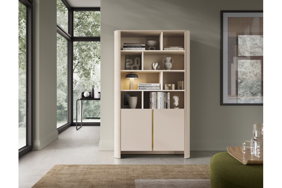 Regał z kolekcji Rabi to połączenie nowoczesnego designu z wysoką funkcjonalnością. Dzięki otwartym półkom oraz dolnej części zamykanej drzwiczkami świetnie sprawdzi się jako miejsce na książki, dekoracje czy dokumenty. Prosta forma i eleganckie wykończenie czynią z niego idealny mebel do salonu, biura czy pokoju młodzieżowego. Regał dostępny jest w dwóch kolorach: kaszmir oraz Dąb Vicenza.