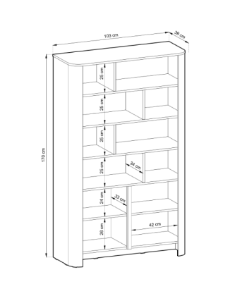 • Duża pojemność – wiele półek o różnych wysokościach pomieści książki, segregatory czy ozdoby.