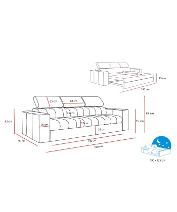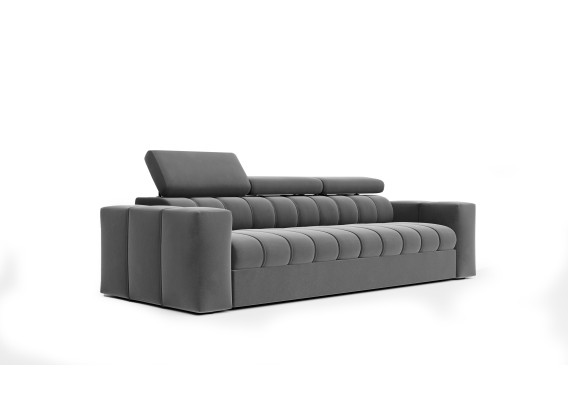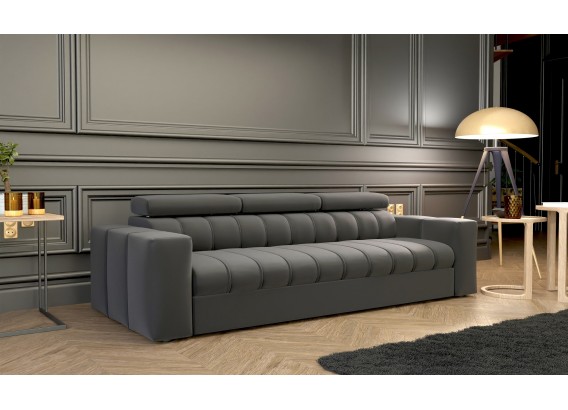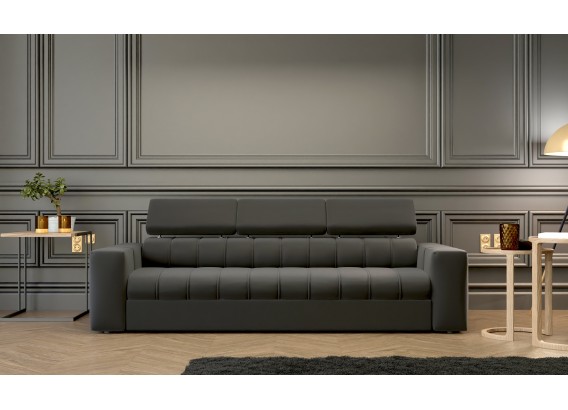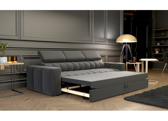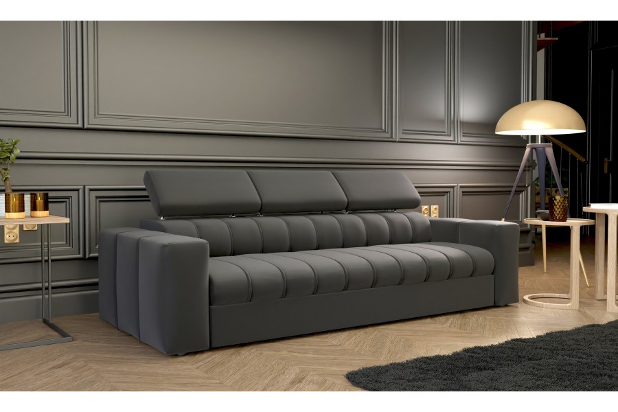 Sofa z funkcją spania, która podbija serca miłośników wypoczynku w całej Europie. Świetnie prezentuje się w przestronnych pokojach dziennych i nowoczesnych aranżacjach salonów. Funkcjonalność to określenie, które bezsprzecznie pasuje do kanapy Kenno. Automat wspomagający rozkładanie czy też regulowane zagłówki to standard w tym modelu. Siedzisko złożone zostało na bazie sprężyn falistych oraz elastycznej pianki. Stelaż wykonany z wytrzymałej płyty meblowej z elementami naturalnego drewna, które wzmacniają całość konstrukcji. Kąt nachylenia nagłówków możemy regulować w zależności od upodobań.