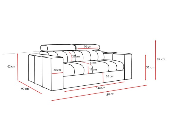Sofa która podbija serca miłośników wypoczynku w całej Europie. Świetnie prezentuje się w przestronnych pokojach dziennych i nowoczesnych aranżacjach salonów. Funkcjonalność to określenie, które bezsprzecznie pasuje do kanapy Kenno. Regulowane zagłówki to standard w tym modelu. Siedzisko złożone zostało na bazie sprężyn falistych oraz elastycznej pianki. Stelaż wykonany z wytrzymałej płyty meblowej z elementami naturalnego drewna, które wzmacniają całość konstrukcji. Kąt nachylenia nagłówków możemy regulować w zależności od upodobań.