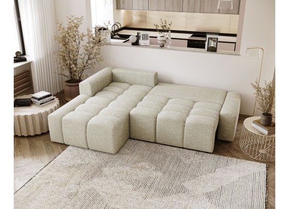 Narożniki Coral to świetne rozwiązanie, jeśli szukasz zarówno wygodnego miejsca do siedzenia, jak i funkcji do spania. Tkanina bouclé dodaje meblom elegancji dzięki swojej teksturze i wyglądowi, który przyciąga wzrok. Nowoczesny narożnik Coral w kształcie litery L gwarantuje 100% komfortu oraz zadowolenia z użytkowania.