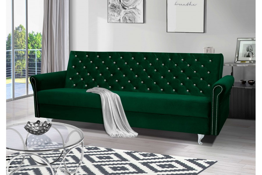 Kanapa Alles to elegancka wersalka, która dzięki wykonaniu pików diamentami Swarovski oraz przeszyciu nadaje nowoczesny styl.