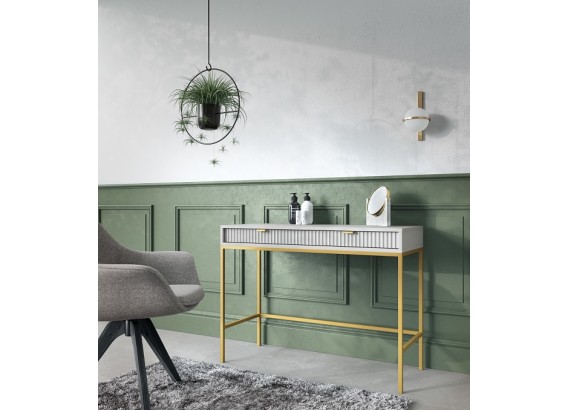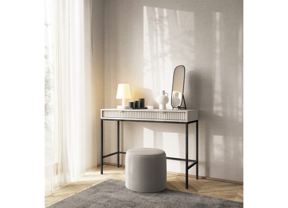 Toaletka z kolekcji Vona to idealna propozycja dla osób, które cenią nowoczesny design i praktyczne rozwiązania. Charakterystyczne, ryflowane fronty w połączeniu z subtelnym stelażem tworzą wyjątkowo lekką, a zarazem elegancką bryłę.